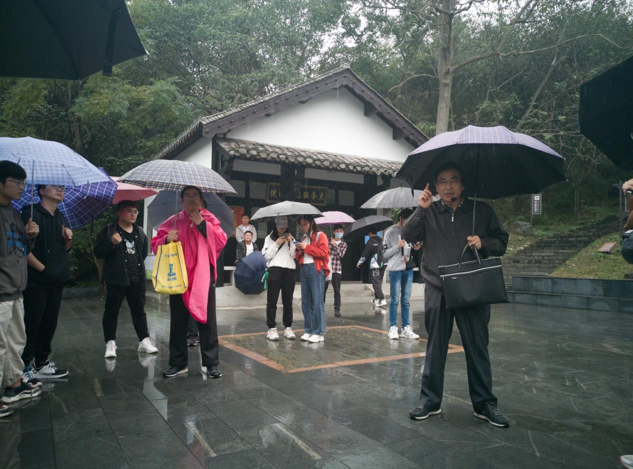 此次实践教学活动,由陈保平、吴新民两位教授带领同学们实地考察齐山的地貌水文与土壤植物。齐山以岩溶地貌为主,遍山岩、洞、石、壑、泉、峡密集丛生,形成奇特幽深、琳琅纷繁的岩溶景观。植物学教授吴新民向学生们介绍了岳飞广场背后的一片顶级植物群落,为五层,分别是三层乔木,一层灌木,一层禾本科植物,该群落以樟树为主。地貌学教授陈保平,向学生们介绍了石芽、石林、溶沟等地表喀斯特地貌类型,并对石芽和石林的区别详细讲解。同学们认真聆听,记录笔记,受益良多。
