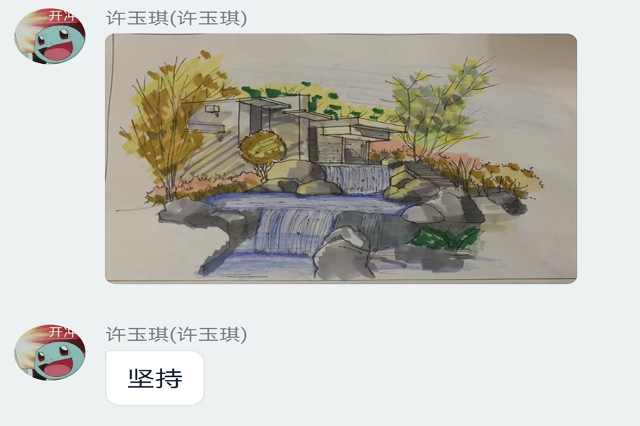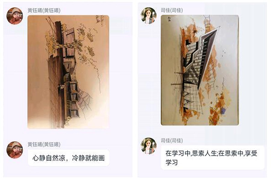 活动要求大家根据自己寒假期间的见闻,结合本身的专业特色绘画出最有感悟的作品,最终连同绘画心得上传到钉钉群中进行接力比拼、相互分享。活动过程中,同学们充分运用自己的创造性思维、加上自己独特的表现手法,为大家呈现了精彩纷呈的手绘作品。活动氛围热烈,效果明显!