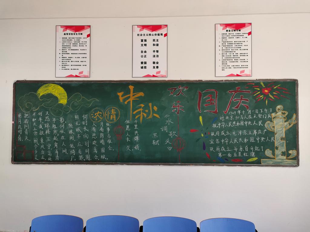 为迎接国庆、中秋佳节,活跃节日气氛,增强同学们的爱国情感,加深同学们对我国优秀传统文化的认同感,10月份,beat365正版唯一官网beat365正版唯一官网学生分会学习部主办了“月满华诞,情满双节”主题黑板报比赛。