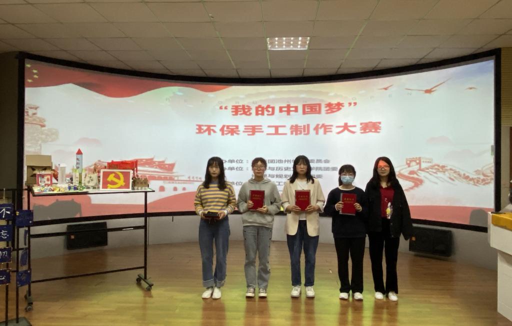本次比赛以“创意中国梦 环保我先行”为主题,共有来自全校200余名同学93支参赛队伍报名参加。参赛同学们利用废旧物品制作环保手工作品,充分展示“我的中国梦”主题。经过激烈角逐,15支参赛队伍进入决赛环节。决赛中选手现场展示作品,并从容自信地讲解作品的设计思路和创意,赢得了在场观众的热烈掌声。经专业教师评审,最终《捕梦中国》《宇航梦》作品获得一等奖,《理想照耀中国》《“牢记使命”挂饰》《梦之灯》和《锦绣中国》作品获得二等奖,《时光列车》《爱国者航天火箭》《中国红灯笼》和《城堡纸巾盒》作品获得三等奖,《温室中的花朵》《光明》《山河绣》《国梦远航》作品获得优秀奖。通过网络投票,《国梦远航》作品获得最佳人气奖。