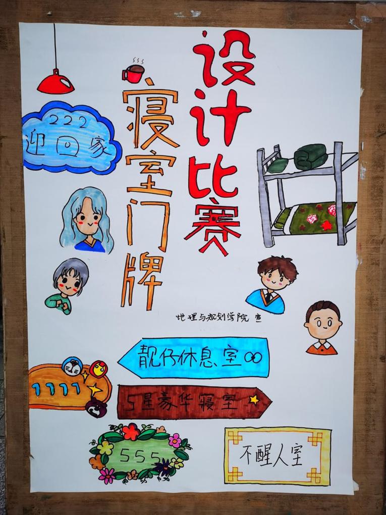 通过此次寝室“门牌”大赛,加强了宿舍成员的团队意识和归属感,彰显了学院学子的设计能力和积极向上的风貌。