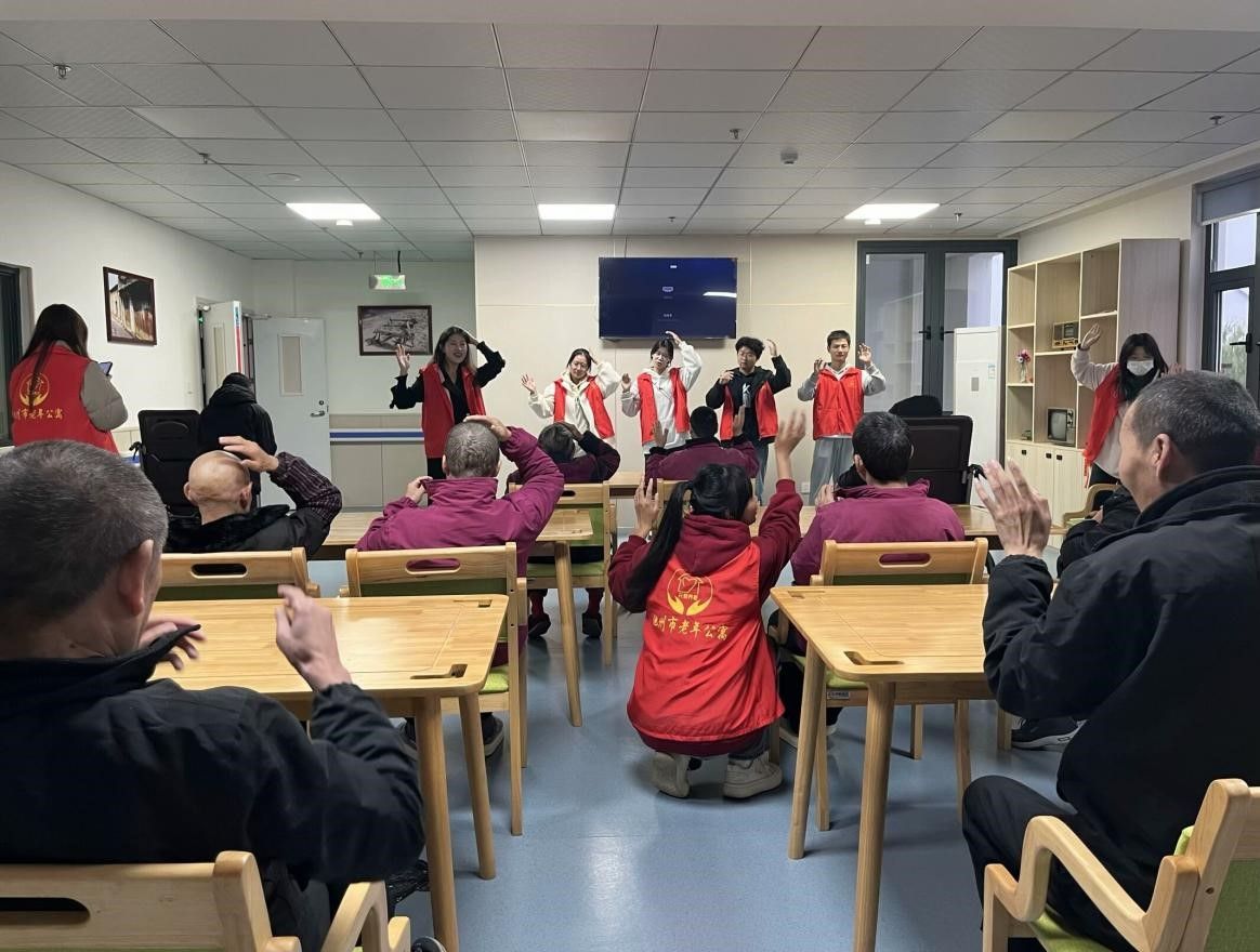 活动伊始,全体志愿者齐唱《强军战歌》,为活动拉开了序幕。随后,志愿者们为老人们带来了刚柔并济的太极表演,并与他们一同参与了趣味小游戏,现场氛围温馨而融洽。