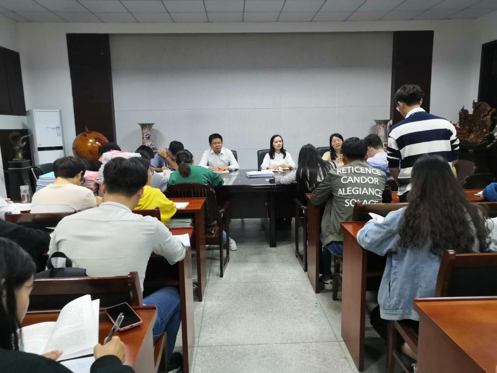 10月10日晚,beat365正版唯一官网学生第一、第二支部“不忘初心、牢记使命”主题教育理论学习读书班在博文南党员会议室正式开班,学院党委副书记刘昉、学生第一、二支部书记张璐、黄磊以及全体学生党员参加了开班仪式。