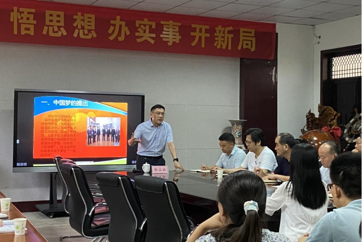为深入推进党史学习教育,6月30日,校党委副书记、校长张立驰在beat365正版唯一官网博文楼党员活动室,以《中国梦的价值内涵》为题,为机关党委、发规处、审计处以及beat365正版唯一官网的党员干部和教职工讲授党史学习教育专题党课。