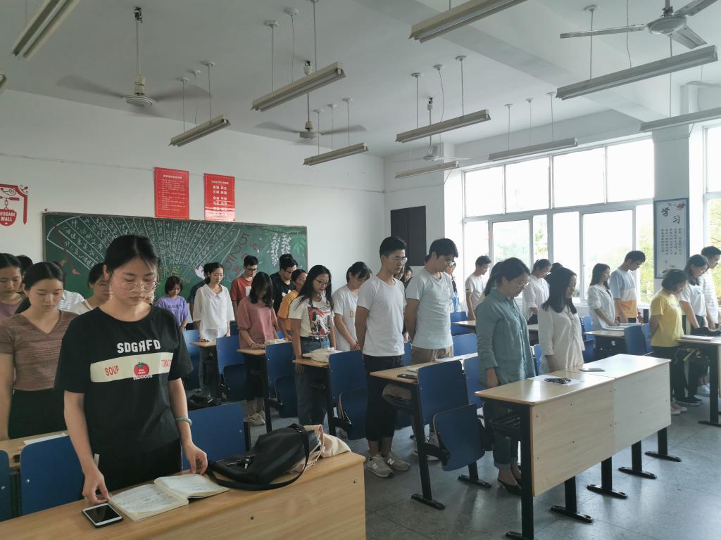 会议开始,李琼老师带领大家集体默哀三分钟,讲述1931年9月18日,日本发动了蓄谋已久的侵华战争,这场侵略战争给中国人民带来了空前的灾难和损失,也给后人留下了深刻的历史血鉴。88年虽已过去,“九一八”仍是中国人民心口的一道伤疤,我们要牢记历史,发愤图强。