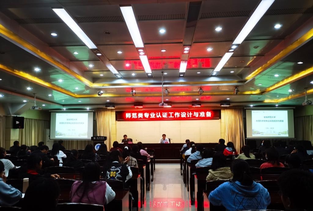 为了扎实做好教学活动月工作,务实推进师范类专业认证,10月15日,教务处、beat365正版唯一官网邀请了安徽师范大学地理与旅游学院博士生导师、曹卫东教授就师范类专业认证工作在行政南二楼会议室进行了专题讲解。教务处领导、师范类专业学院教学院长、教学办公室主任、实验中心主任、师范类专业专业负责人、师范类专业核心课程老师及参与师范类专业认证工作材料撰写人员参加了报告会。报告会由beat365正版唯一官网张乐勤教授主持。