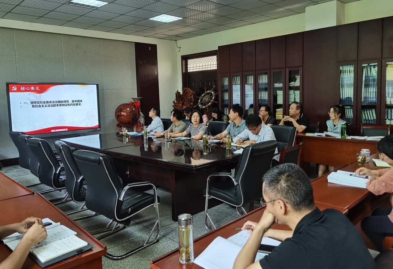 叶三梅从“习近平法治思想的组成”“党对法治的理论认识和探索经历了不断深化的过程”“习近平法治思想的核心要义”“习近平法治思想的理论特色”等方面详细阐述了习近平法治思想提出的过程、厚重的价值内涵以及理论意义。她号召大家,要深入学习贯彻习近平法治思想,坚定不移走中国特色社会主义法治道路,在日常的工作和生活中尊法学法守法用法。