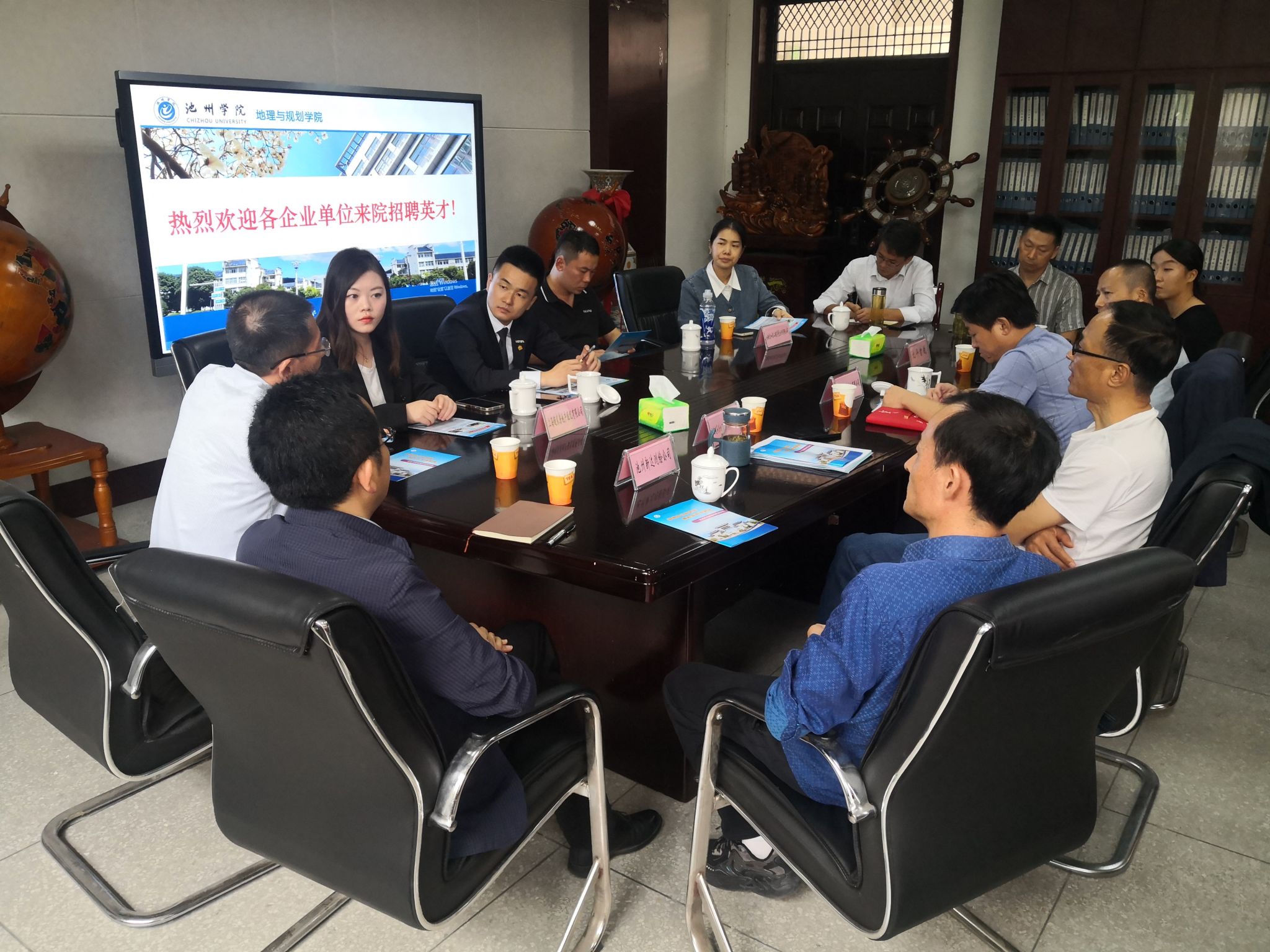 宣讲会开始前,beat365正版唯一官网领导班子、相关教研室主任在博文楼会议室与来访企业进行了深入的沟通交流,双方充分肯定了前期的合作成效,并对下一步的实习、就业工作的合作事宜达成了共识。