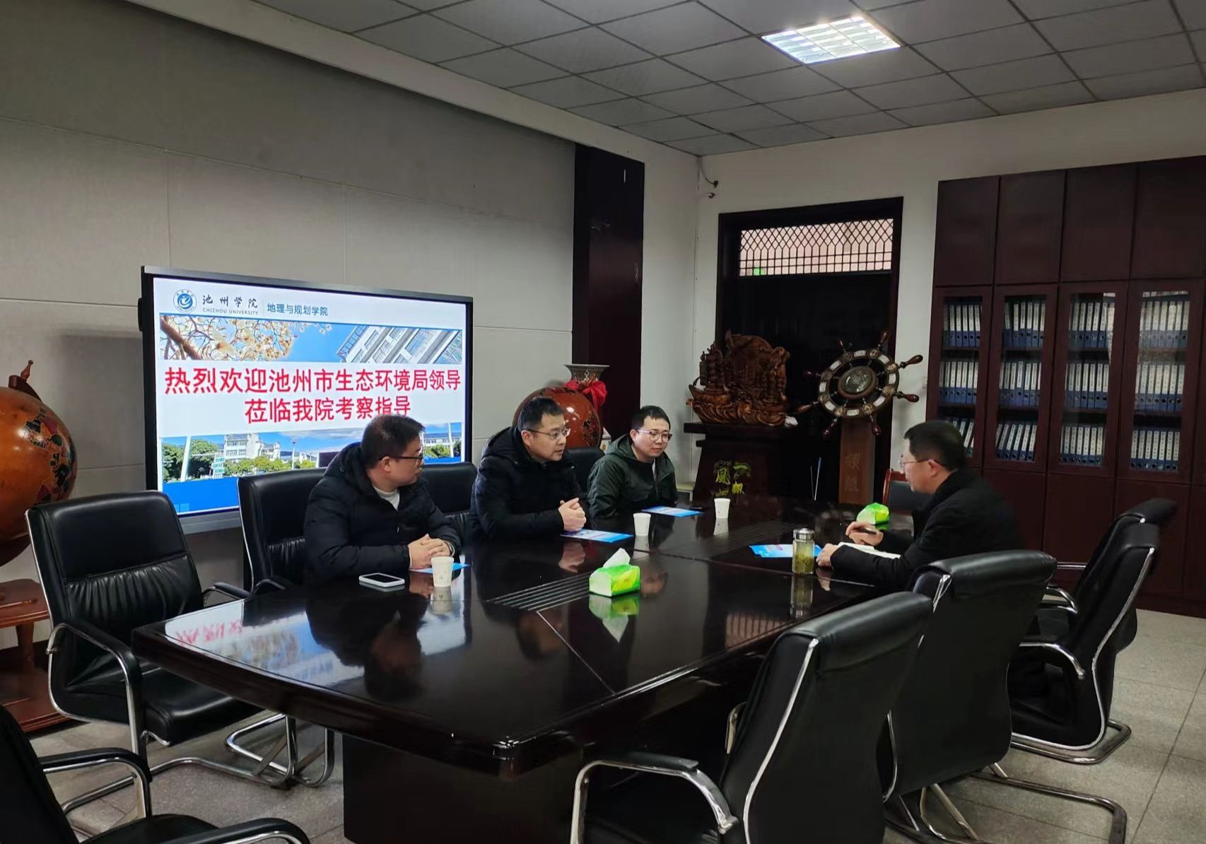 2月22日上午,池州市生态环境局副局长马卫中一行到beat365正版唯一官网考察交流。beat365正版唯一官网院长张乐勤及部分教师参会。