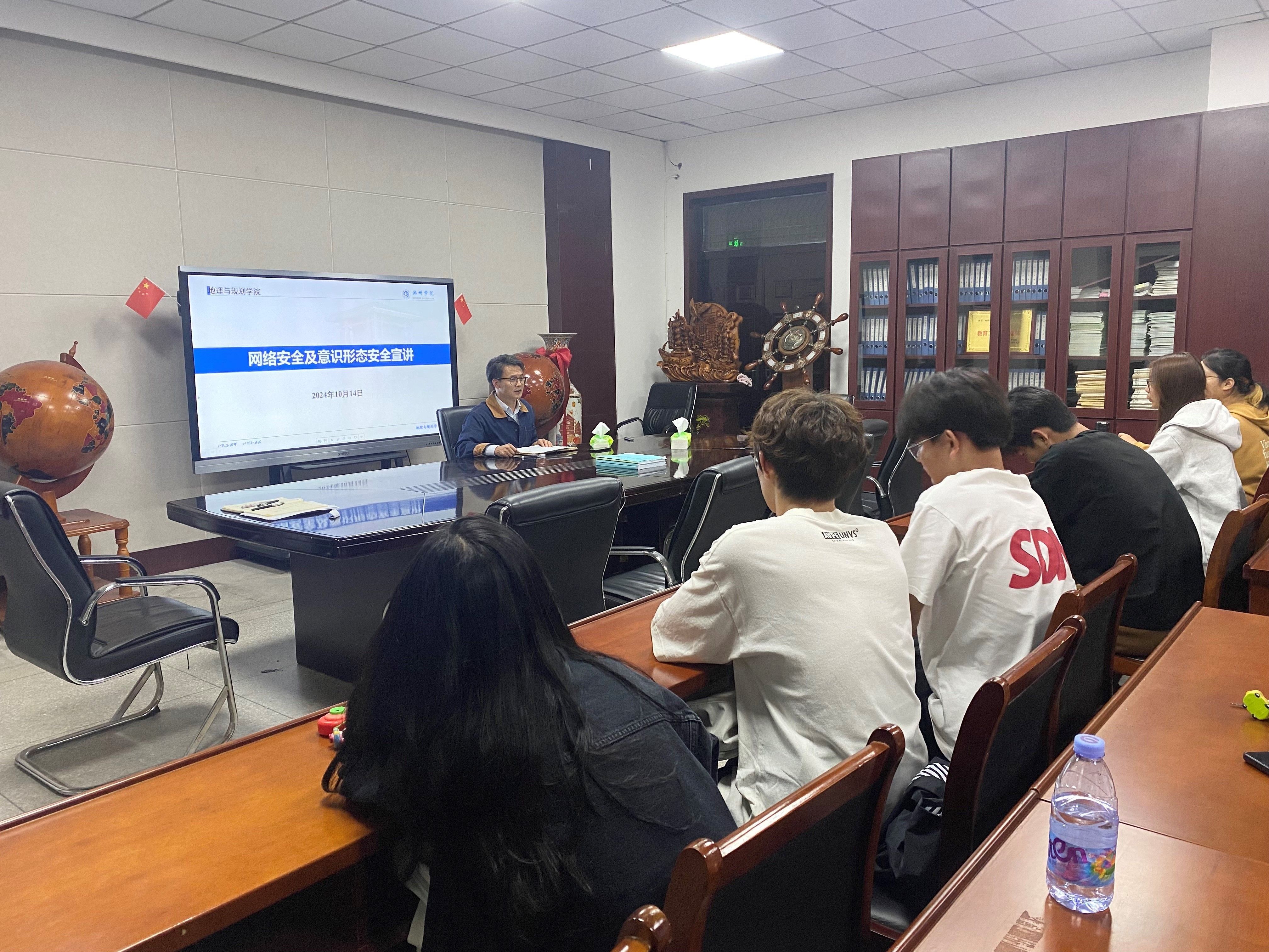 10月14日,beat365正版唯一官网在博文南楼一楼会议室召开了网络安全及意识形态安全宣讲会。本次宣讲会由beat365正版唯一官网党委副书记何小青主讲,2023级与2024级的各班班委参加了宣讲会。