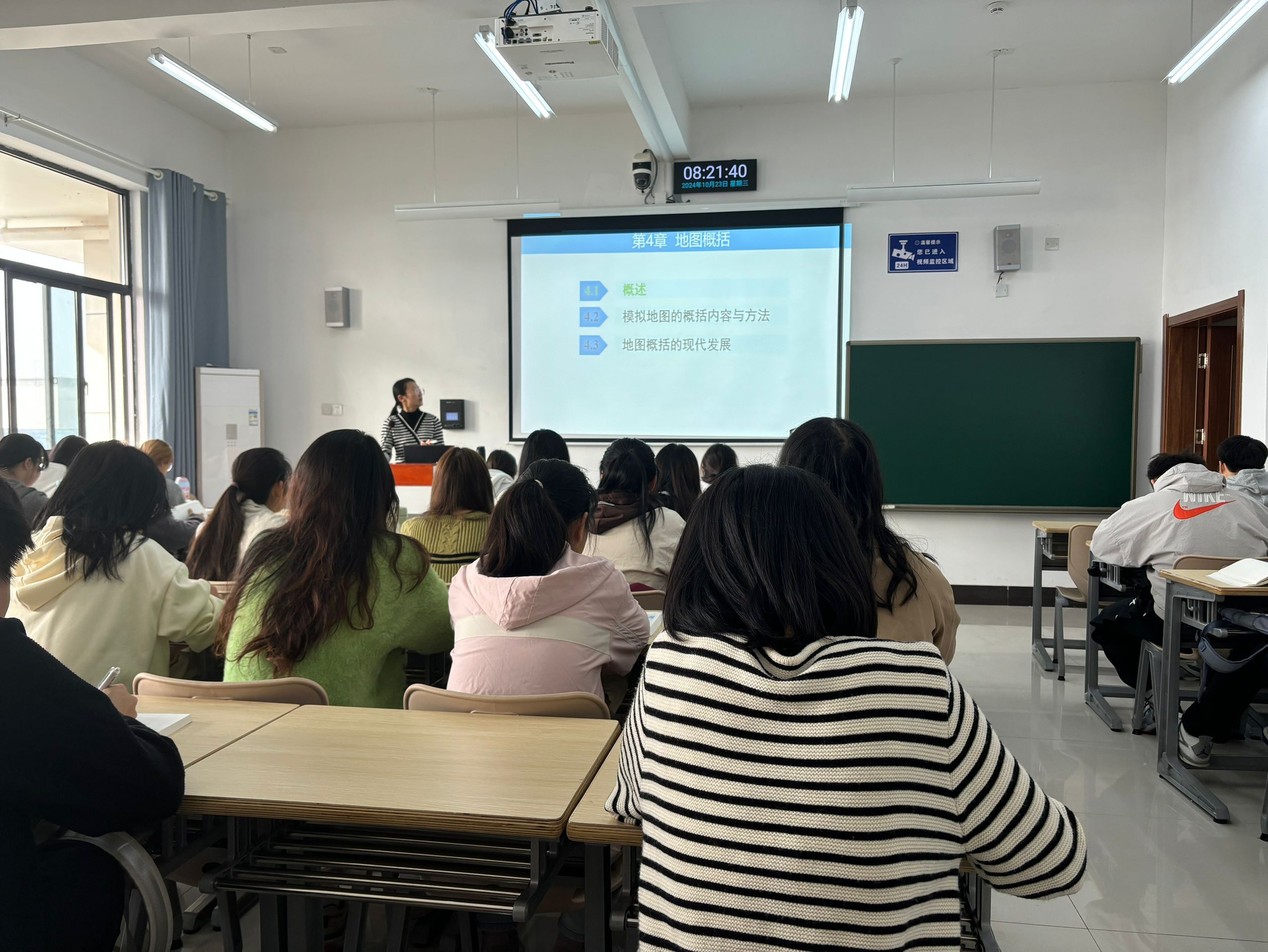 黄银兰老师的 “地图学” 示范课同样引人入胜。她以如何将地理信息表现在地图上的问题导入课程,生动阐释了地图概括的概念和实质,通过对比不同用途和比例尺的地图,让学生直观感受地图概括的重要性,增强了学生的国家版图意识。