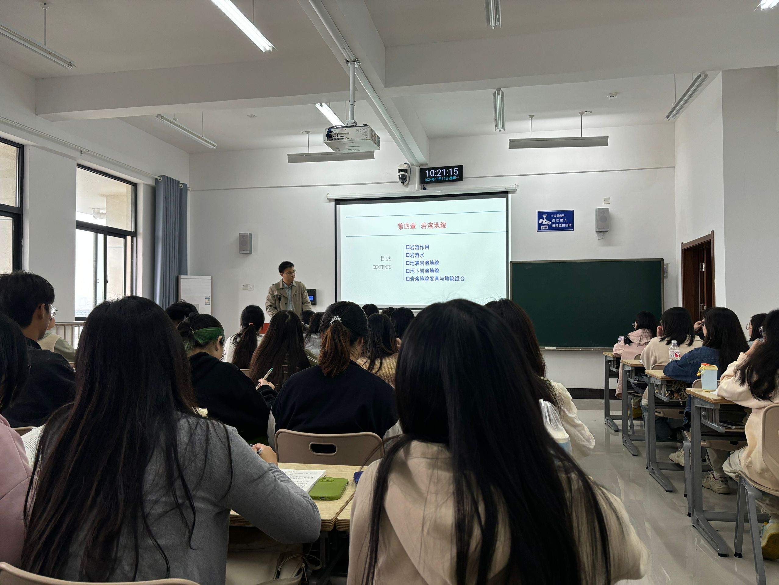 曹明达老师在 “地貌学”示范课中,以黄山和碳酸盐岩地区洞穴发育差异为切入点,巧妙引出课程内容,通过丰富的案例和清晰的讲解,使学生们深入理解了岩溶作用的原理,激发了他们对地质现象的探索热情。