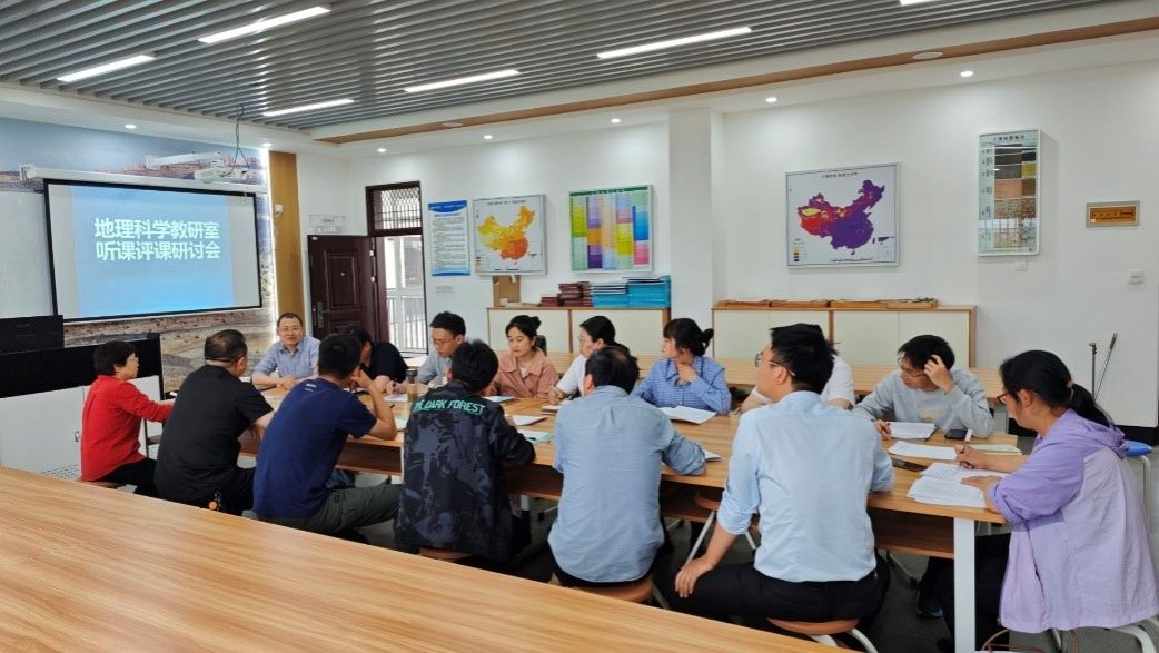 在学校迎评申硕的关键期,为了提高教研室教师的教学质量和授课水平,2025年4月23日下午,地理科学教研室联合教工第二支部在博文楼403室开展听课评课研讨会。校督导、材料与环境工程学院刘天宝教授受邀参会,会议由支部书记、教研室主任荣慧芳主持。