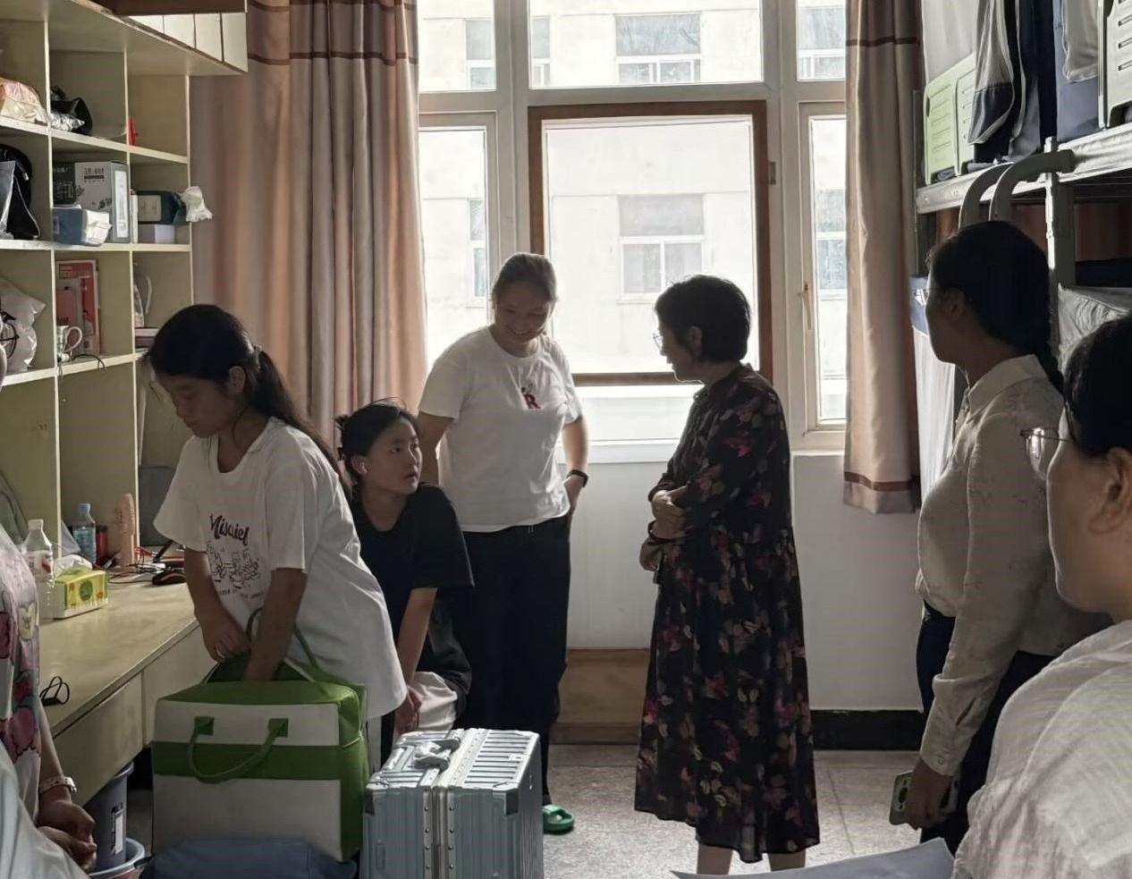 学院领导逐一深入学生房间,与新生们面对面亲切交流,细致关心大家入校后的生活适应情况,并对各类设施功能、用电规范、应急通道等进行了系统检查。对于现场发现的需维修改善的问题,检查小组做了详细备案并第一时间启动报修流程。冯淑慧在交流中表示,大学宿舍是同学们独立生活的起点,也是培养自律、合作和集体责任感的重要场所,她希望新生们尽快适应新环境,友爱互助,共建文明、健康、和谐的宿舍氛围。