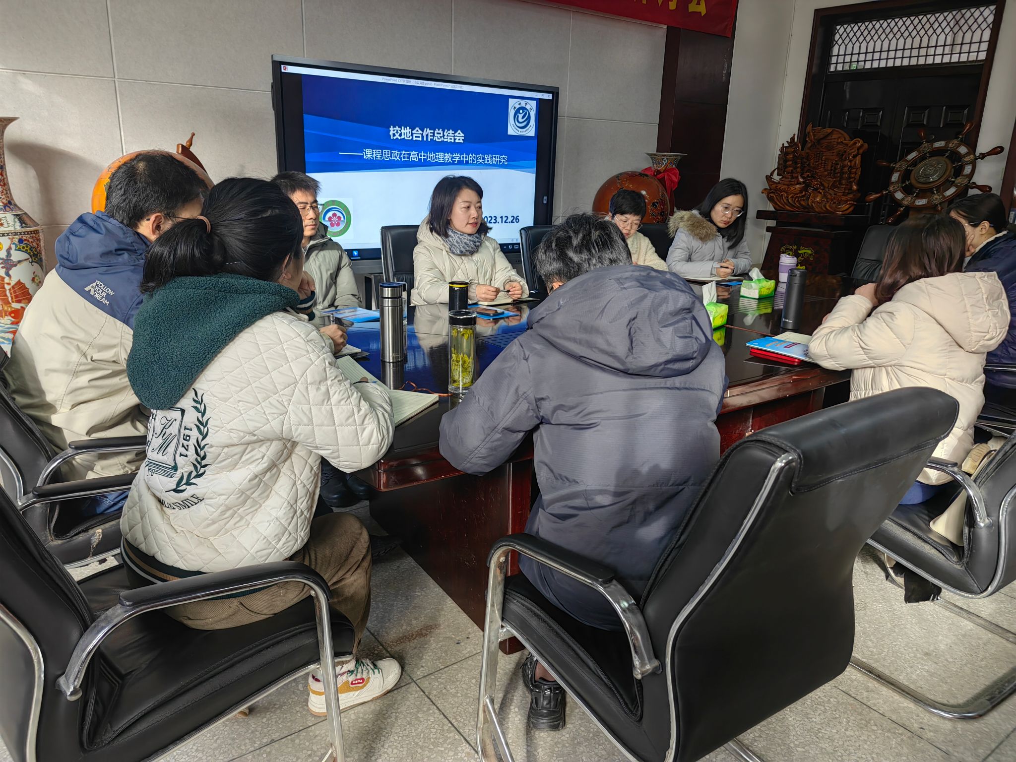 12月26日上午,“课程思政在高中地理教学中的实践研究”校地合作研究总结会在beat365正版唯一官网会议室召开。课题组全体成员、池州六中地理教研组教师、地理科学教研室部分教师参加了会议。